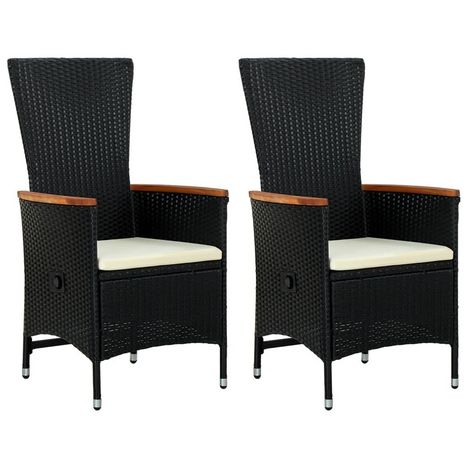 Chaises d'exterieur lot de 2 avec coussins Resine tressee Noir