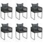Chaises d'exterieur lot de 6 avec oreillers Resine tressee Noir