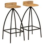 Les chaises de bar sont en bois de manguier massif et ont une structure en acier robuste. Elles sont tres stables et durables. Les dossiers et les repose-pieds contribuent au confort d'assise des chaises. Les cadres en acier contribuent a la stabilite de l'ensemble ainsi qu'a son style industriel. Chaque etape du processus de fabrication est realisee avec le plus grand soin, qu'il s'agisse de la recombinaison, du polissage, de la peinture ou du laquage. L'ensemble est facile a assembler. La livraison inclut 2 chaises de bar.