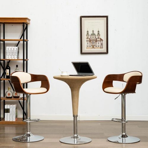 Chaises de bar lot de 2 creme bois courbe et similicuir