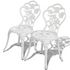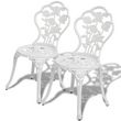 Cet ensemble de chaises de bistro sera une addition decorative a votre jardin, patio, ou balcon avec leurs details floraux ornes. Ce sera un plaisir d'avoir une tasse de the avec vos amis assis sur ces chaises ! L'ensemble de bistro est fabrique en aluminium coule de haute qualite, resistant aux int
