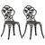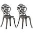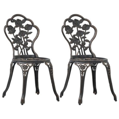 Cet ensemble de chaises de bistro sera une addition decorative a votre jardin, patio, ou balcon avec leurs details floraux ornes. Ce sera un plaisir d'avoir une tasse de the avec vos amis assis sur ces chaises ! L'ensemble de bistro est fabrique en aluminium coule, resistant aux intemperies et tres