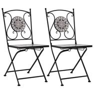Cet ensemble de chaises en mosaïque ajoutera une touche decorative a votre jardin, terrasse ou balcon. Cela vous fera tout particulierement plaisir de prendre une tasse de the avec vos amis, assis sur ces chaises. Grace a un cadre en fer enduit de poudre fort, cet ensemble est robuste et durable. Gr