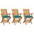 Chaises de jardin avec coussins bleu clair lot de 3 Teck massif