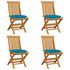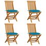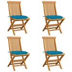 Chaises de jardin avec coussins bleu clair lot de 4 Teck massif