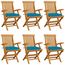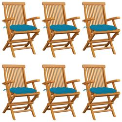 Chaises de jardin avec coussins bleu clair lot de 6 Teck massif