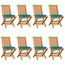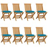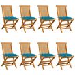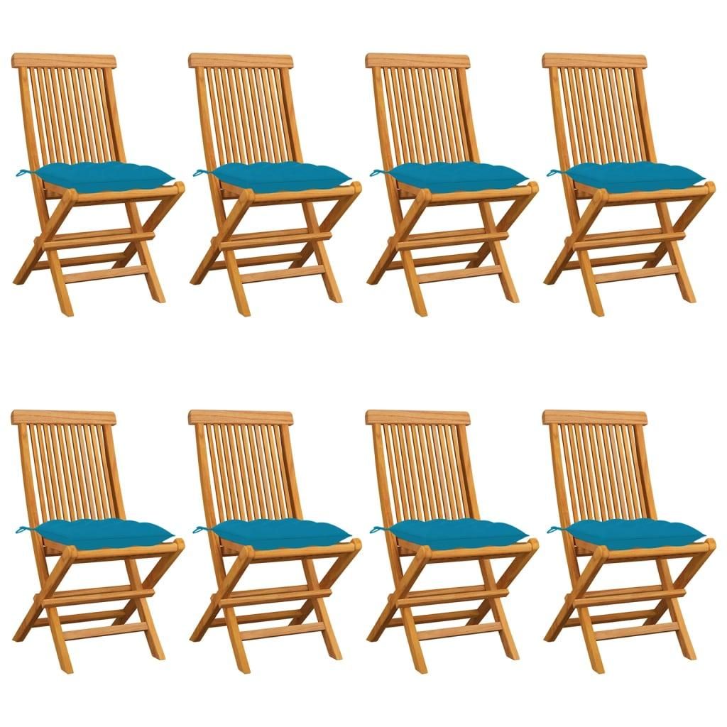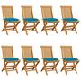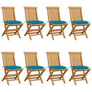 Chaises de jardin avec coussins bleu clair lot de 8 Teck massif
