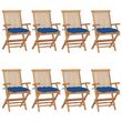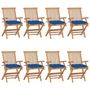 Chaises de jardin avec coussins bleu lot de 8 Bois teck massif