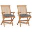 Chaises de jardin avec coussins gris lot de 2 Bois teck massif
