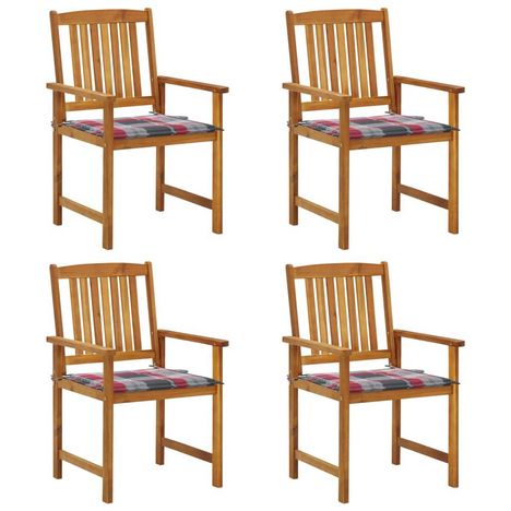 Chaises de jardin avec coussins lot de 4 Bois d'acacia massif