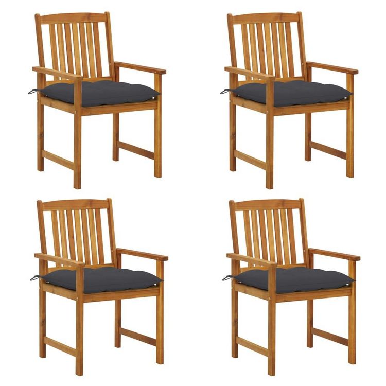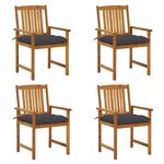 Chaises de jardin avec coussins lot de 4 Bois d'acacia massif
