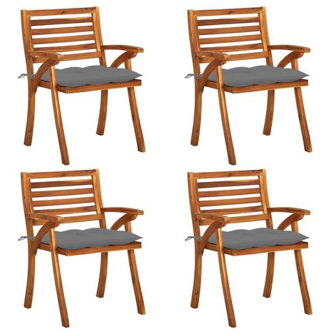 Chaises de jardin avec coussins lot de 4 Bois de teck solide