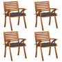 Chaises de jardin avec coussins lot de 4 Bois de teck solide