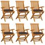 Chaises de jardin avec coussins taupe lot de 6 Bois teck massif