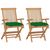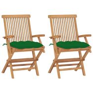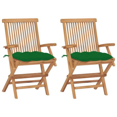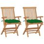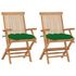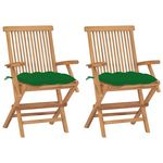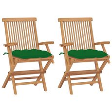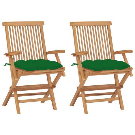 Chaises de jardin avec coussins vert lot de 2 Bois teck massif