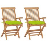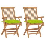 Chaises de jardin avec coussins vert vif lot de 2 Bois de teck