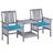 La table et les chaises sont en bois d'acacia massif, ce qui leur permet d'etre extremement stables et robustes. Le dessus de table robuste et l'etagere inferieure sont ideaux pour ranger vos tasses, livres et autres petits objets. Et les dossiers et les accoudoirs des chaises garantissent une experience d'assise reposante. De plus, les coussins ajoutent un confort supplementaire. Chaque coussin comprend deux jeux de cordes pour le fixer fermement sur l'ensemble de bistro.