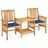 La table et les chaises sont en bois d'acacia massif avec une finition a l'huile, ce qui leur permet d'etre extremement stables et robustes. Le dessus de table robuste et l'etagere inferieure sont ideaux pour ranger vos tasses, livres et autres petits objets. Et les dossiers et les accoudoirs des chaises garantissent une experience d'assise reposante. De plus, grace a sa finition a l'huile, le meuble est facile a nettoyer avec un chiffon humide. Les coussins ajoutent un confort supplementaire. Chaque coussin comporte deux jeux de cordes pour le fixer fermement sur l'ensemble de bistro.