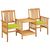 La table et les chaises sont en bois d'acacia massif avec une finition a l'huile, ce qui leur permet d'etre extremement stables et robustes. Le dessus de table robuste et l'etagere inferieure sont ideaux pour ranger vos tasses, livres et autres petits objets. Et les dossiers et les accoudoirs des chaises garantissent une experience d'assise reposante. De plus, grace a sa finition a l'huile, le meuble est facile a nettoyer avec un chiffon humide. Les coussins ajoutent un confort supplementaire. Chaque coussin comporte deux jeux de cordes pour le fixer fermement sur l'ensemble de bistro.