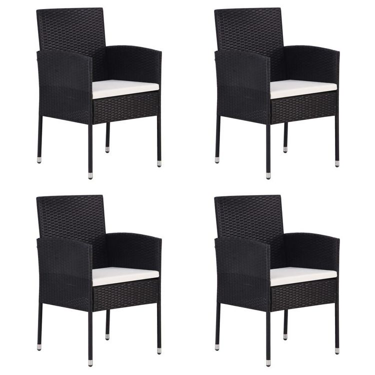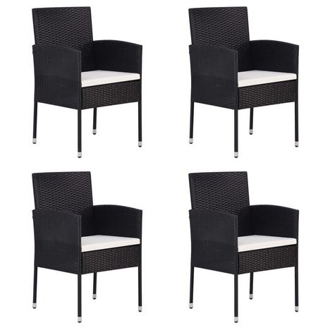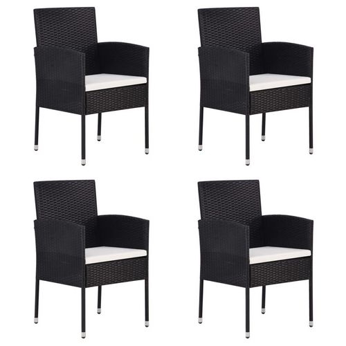 Chaises de jardin coussins blanc creme 4pcs noir resine tressee
