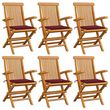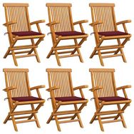 Chaises de jardin coussins rouge bordeaux lot de 6 Teck massif