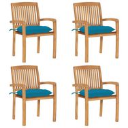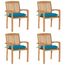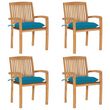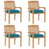 Chaises de jardin empilables avec coussins lot de 4 Teck solide