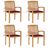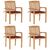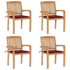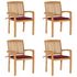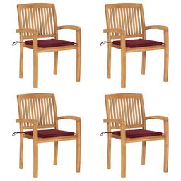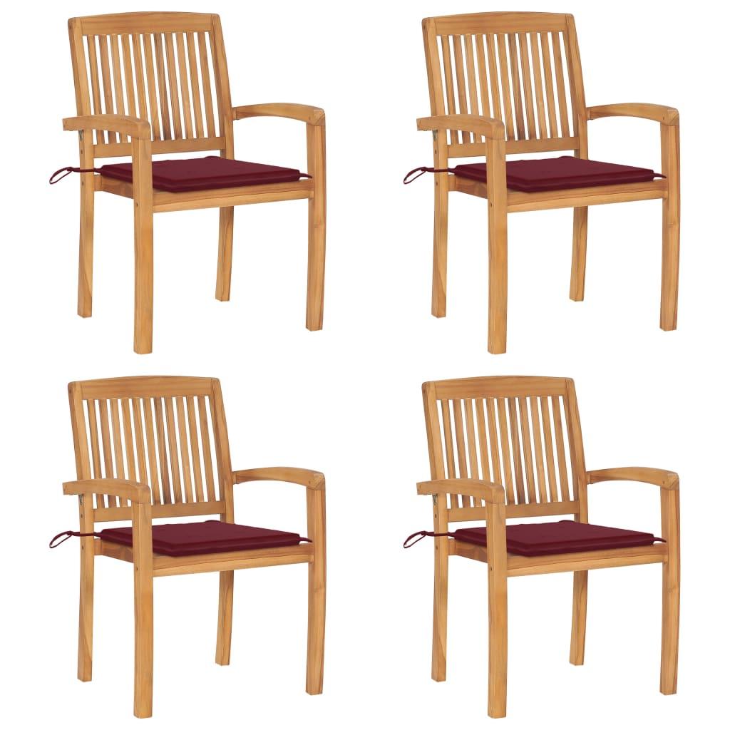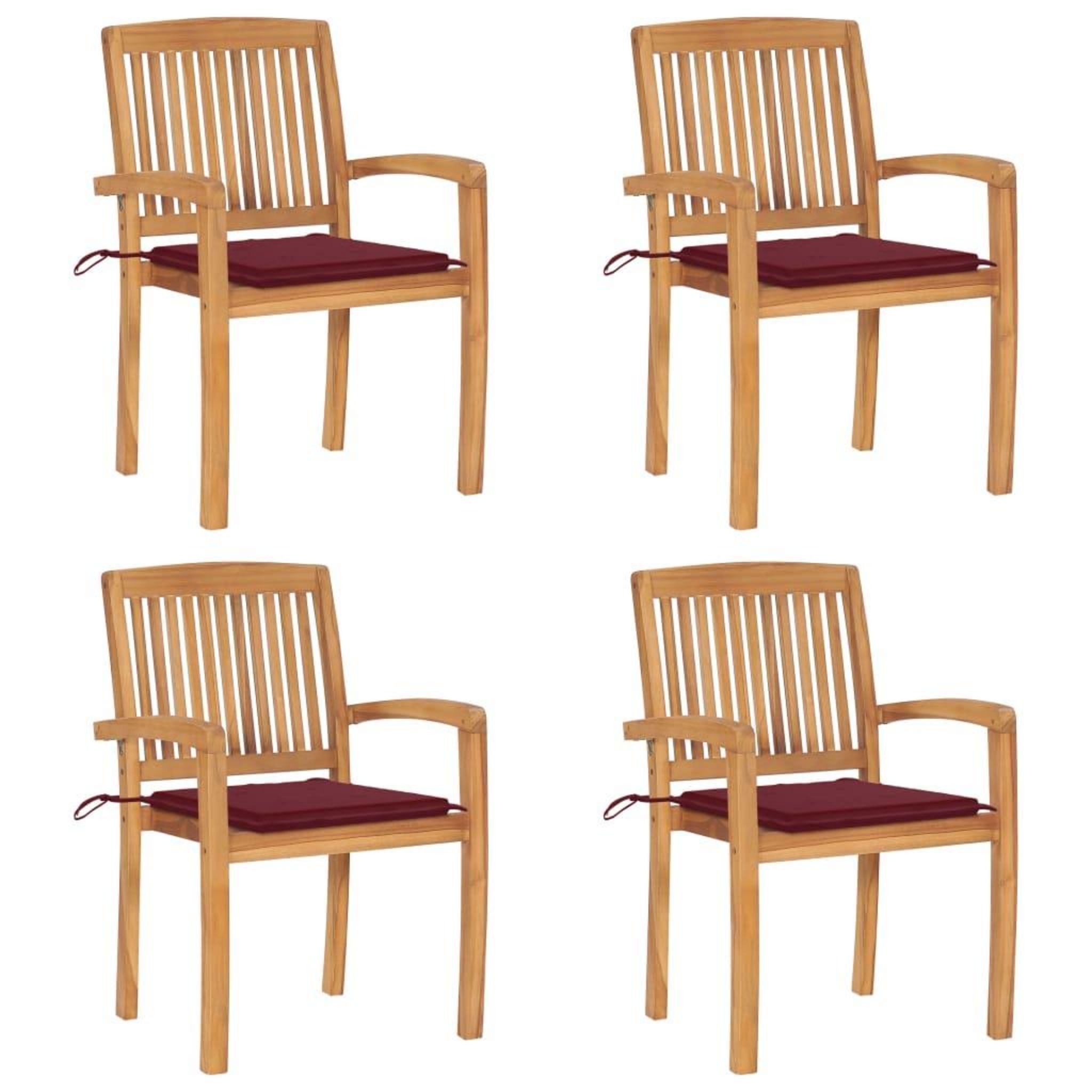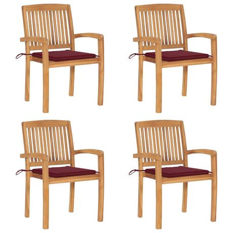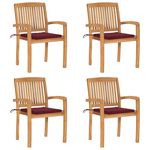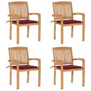 Chaises de jardin empilables avec coussins lot de 4 Teck solide