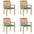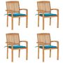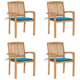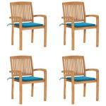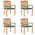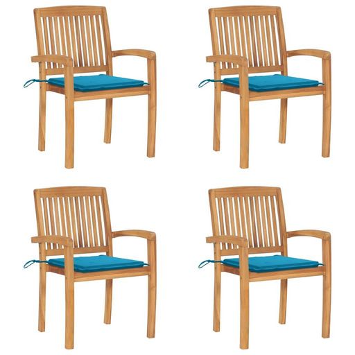 Chaises de jardin empilables avec coussins lot de 4 Teck solide