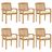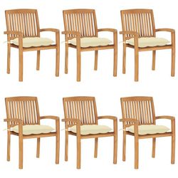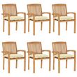 Chaises de jardin empilables avec coussins lot de 6 Teck solide