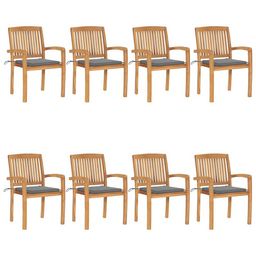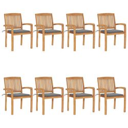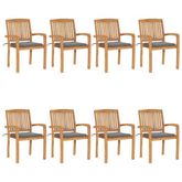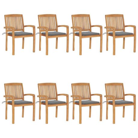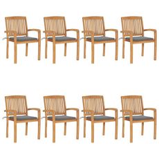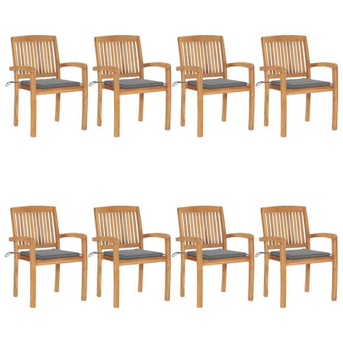 Chaises de jardin empilables avec coussins lot de 8 Teck solide