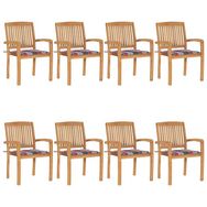 Chaises de jardin empilables avec coussins lot de 8 Teck solide