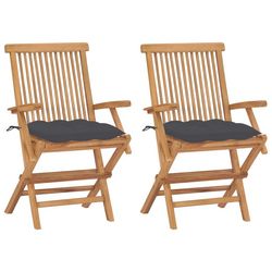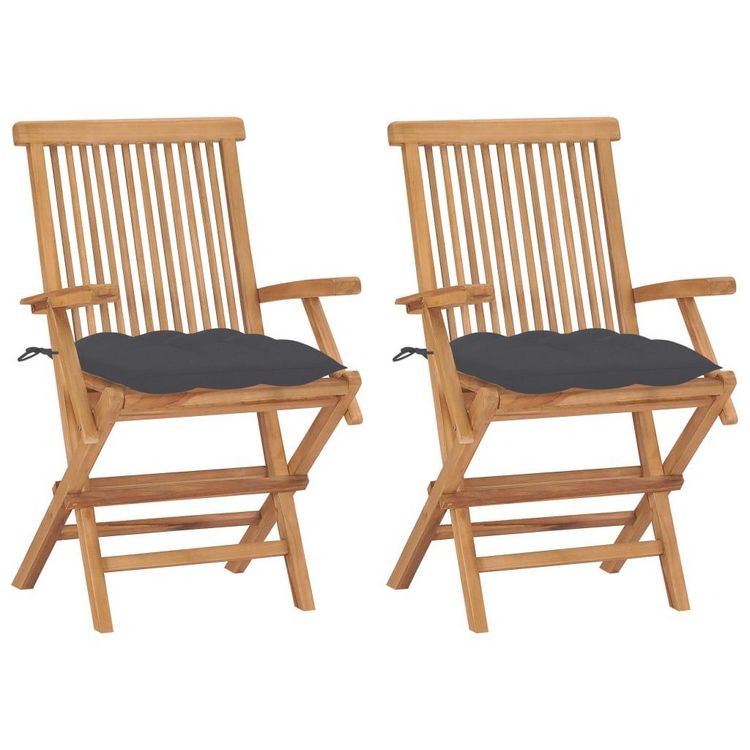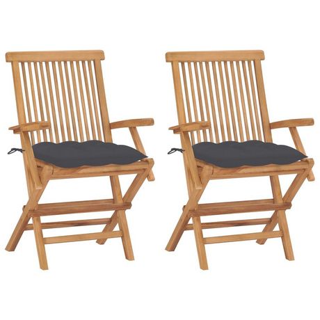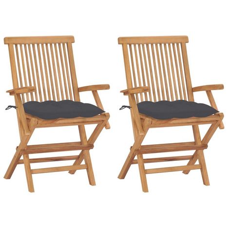 Chaises de jardin et coussins anthracite lot de 2 Bois de teck