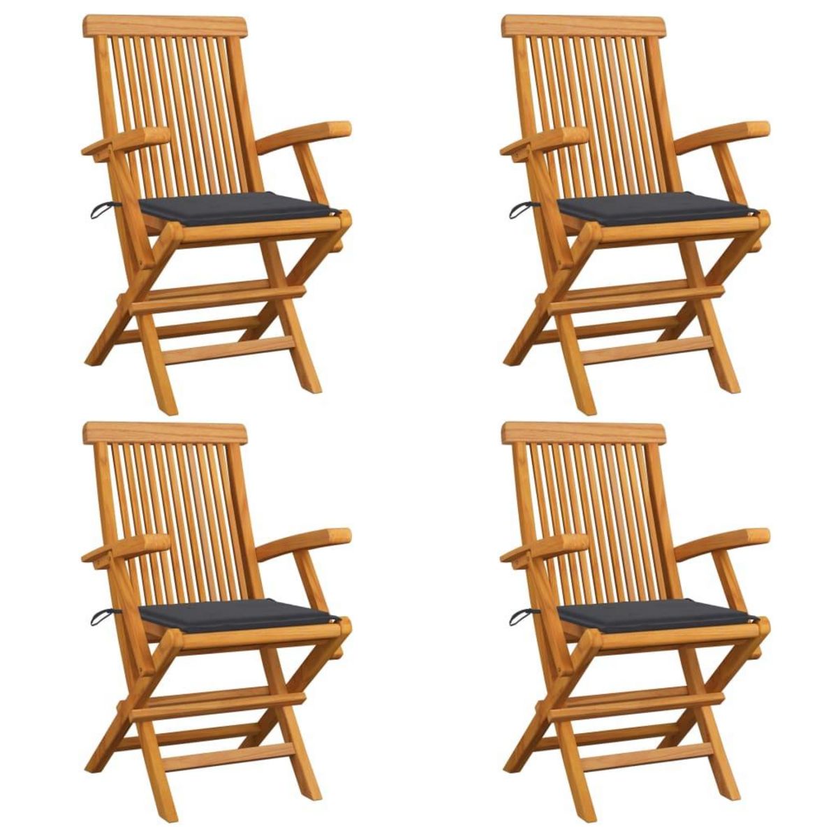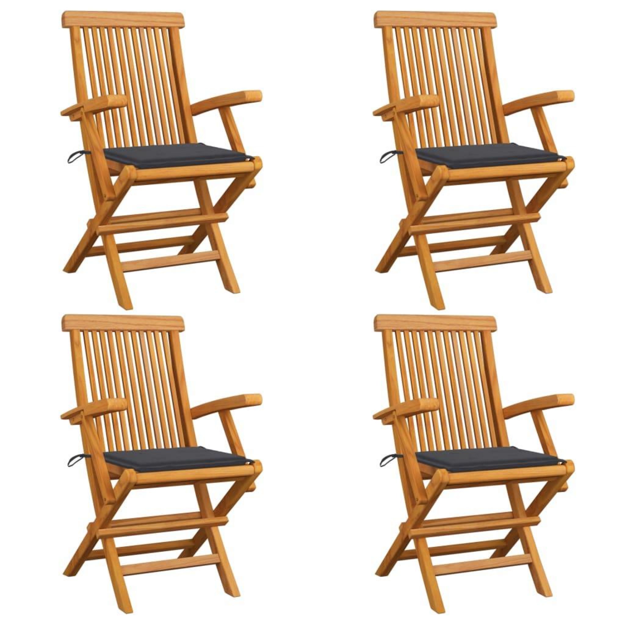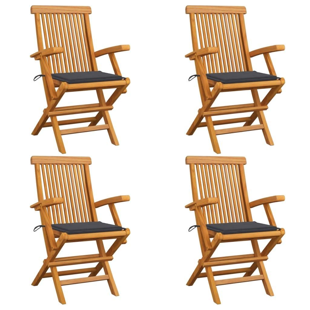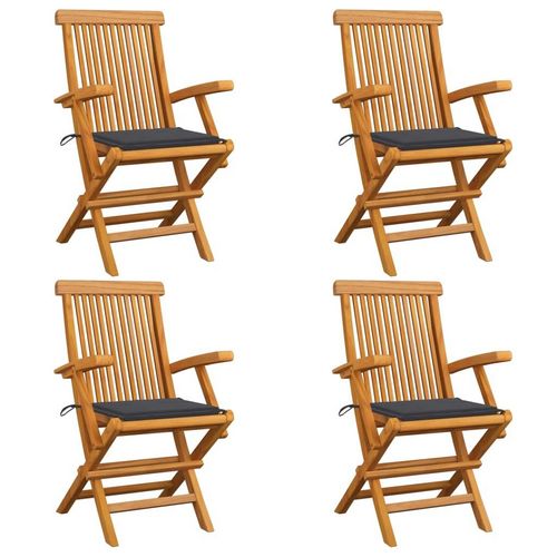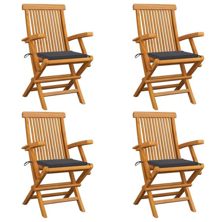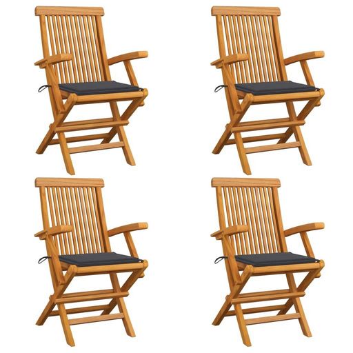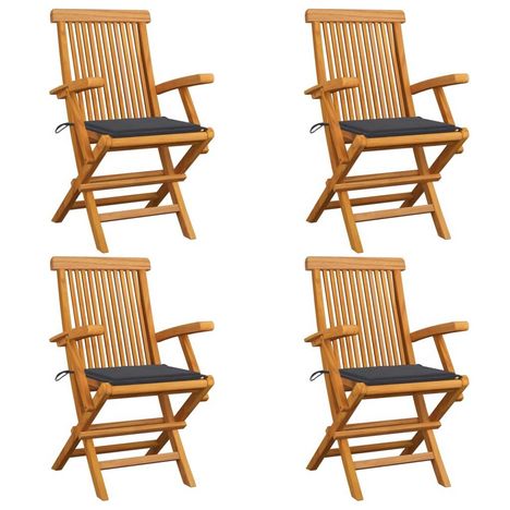 Chaises de jardin et coussins anthracite lot de 4 Bois de teck