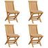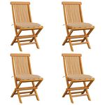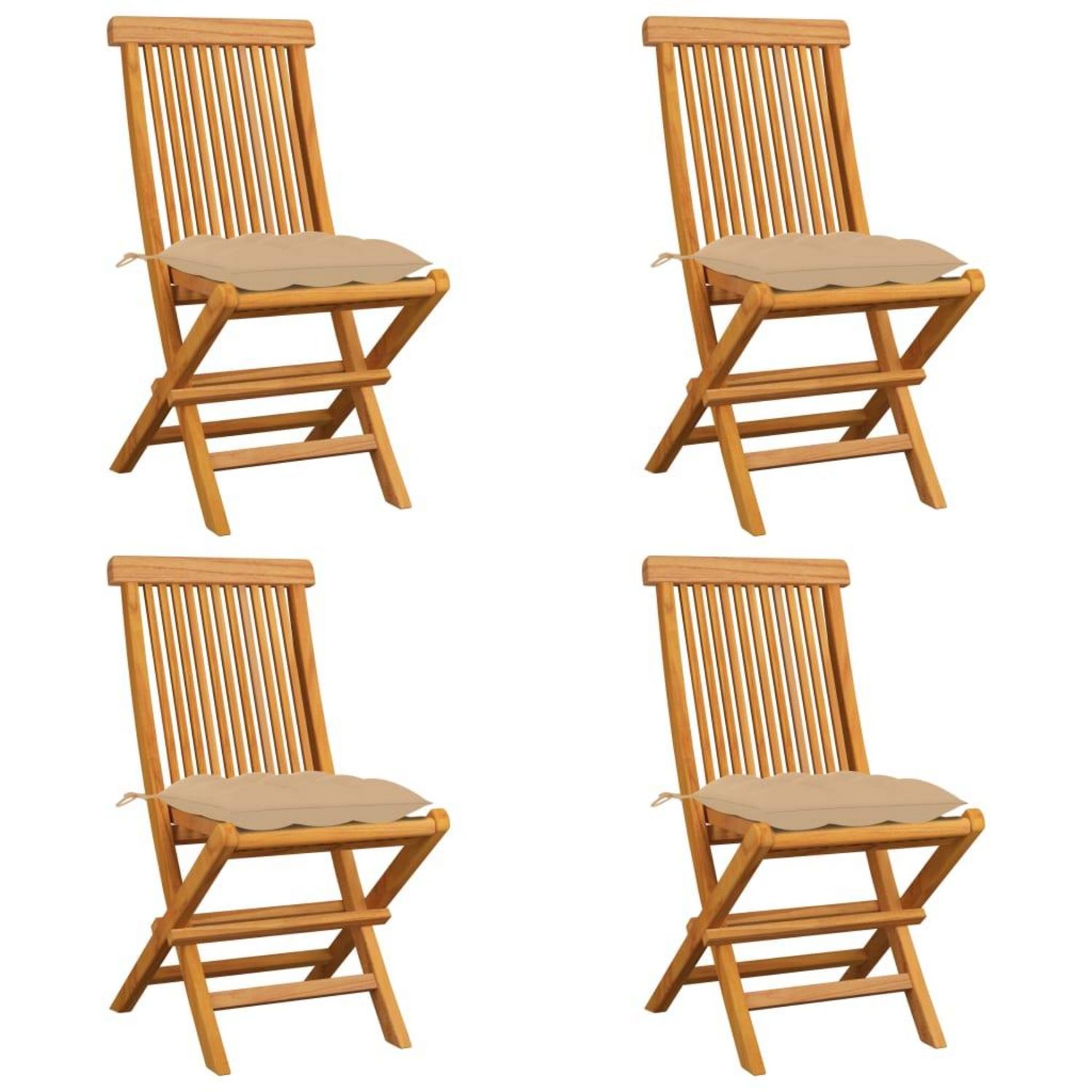 Chaises de jardin et coussins beige lot de 4 Bois teck massif