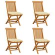 Chaises de jardin et coussins blanc creme lot de 4 Teck massif