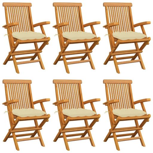 Chaises de jardin et coussins blanc creme lot de 6 Teck massif