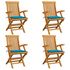 Chaises de jardin et coussins bleu lot de 4 Bois de teck massif