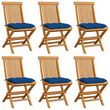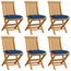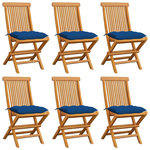 Chaises de jardin et coussins bleu lot de 6 Bois de teck massif