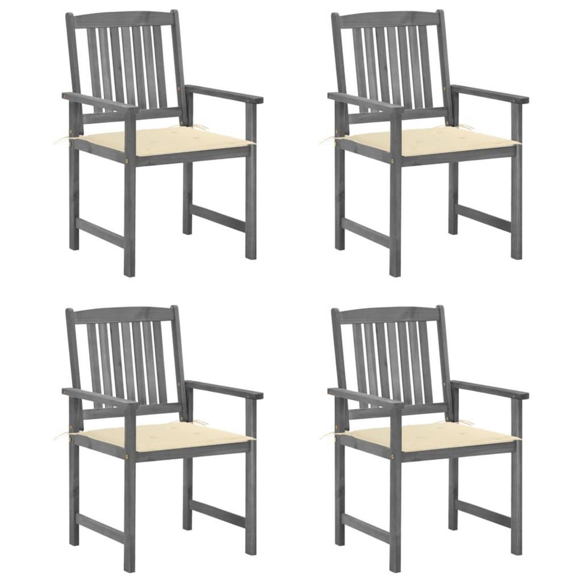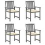 Chaises de jardin et coussins lot de 4 Gris Bois acacia massif