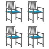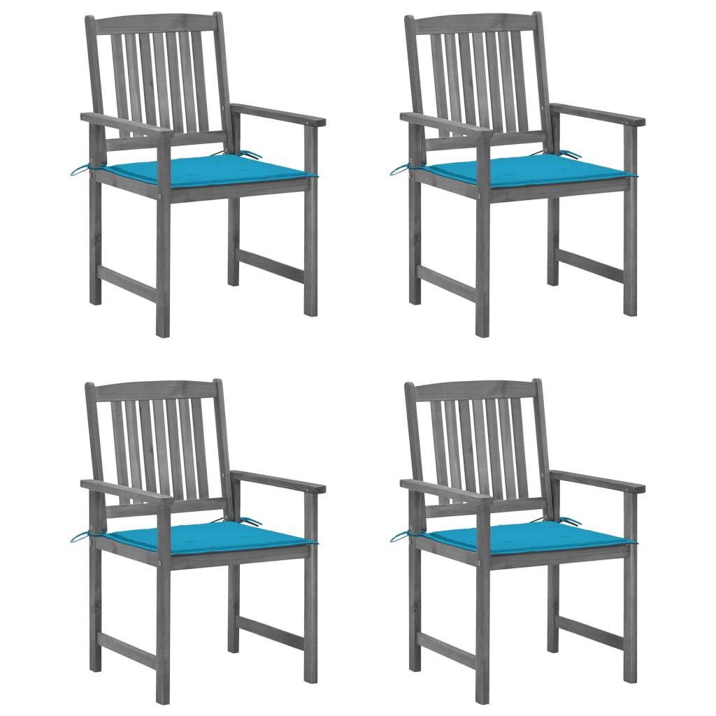 Chaises de jardin et coussins lot de 4 Gris Bois acacia massif
