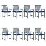 Chaises de jardin et coussins lot de 8 Bois acacia solide Gris