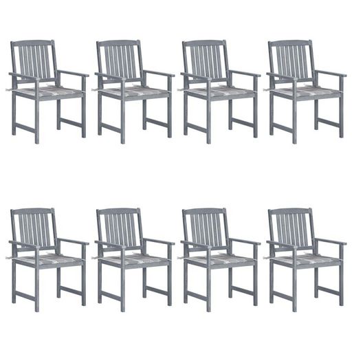Chaises de jardin et coussins lot de 8 Bois acacia solide Gris