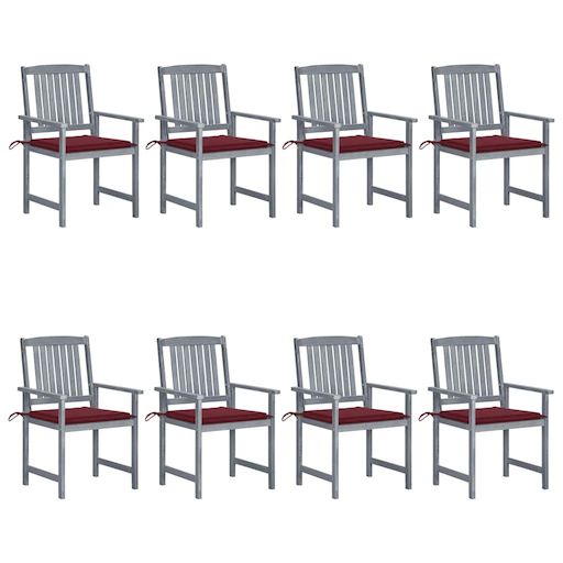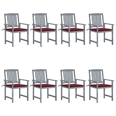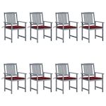 Chaises de jardin et coussins lot de 8 Bois acacia solide Gris