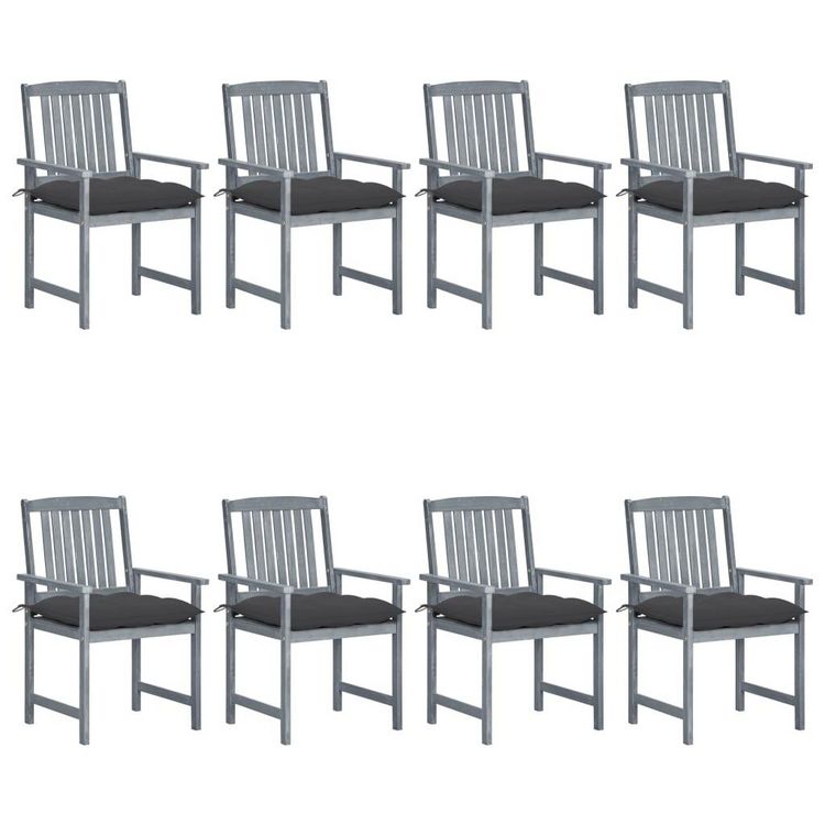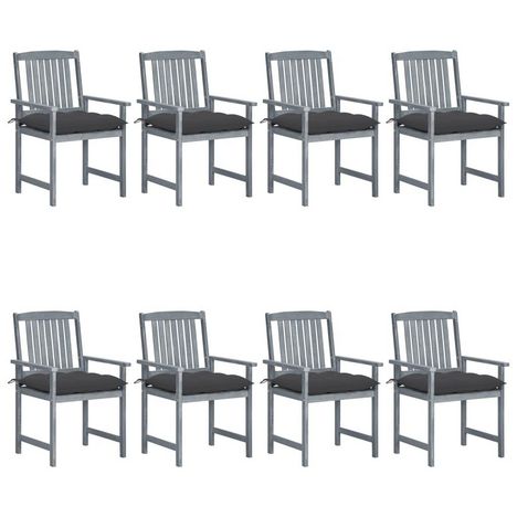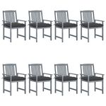 Chaises de jardin et coussins lot de 8 Bois acacia solide Gris