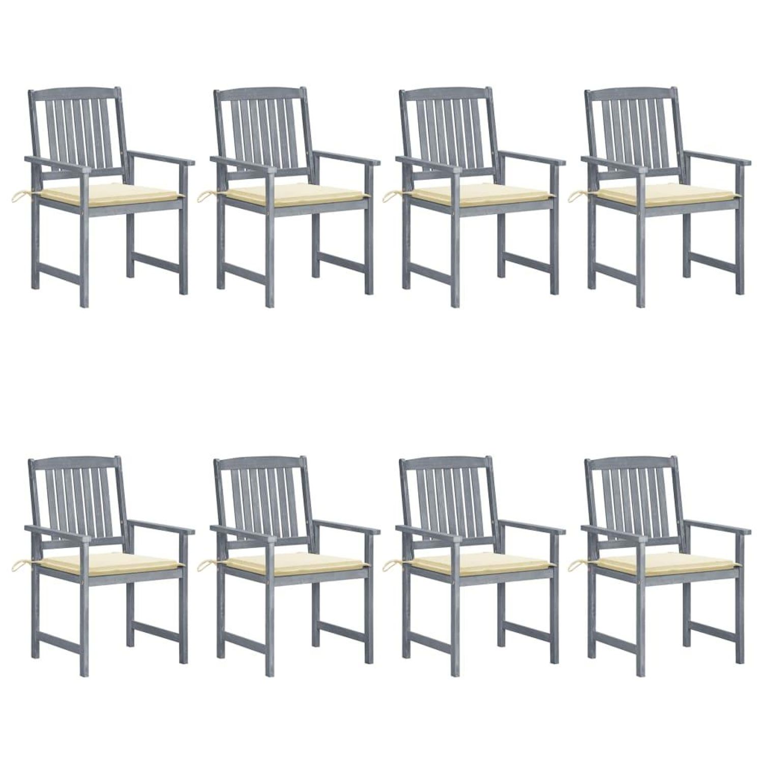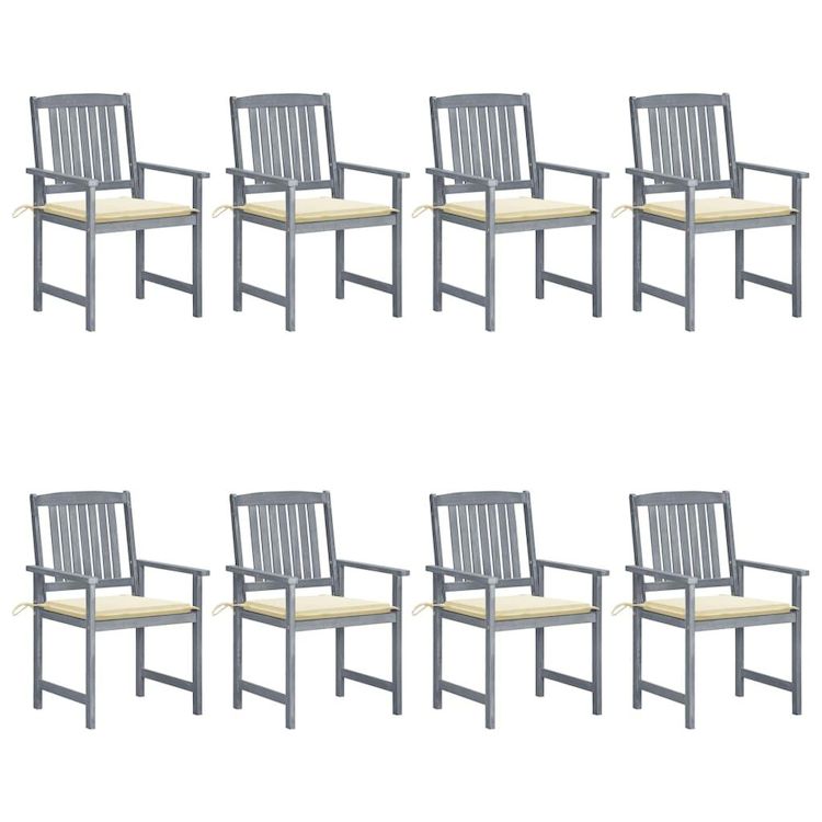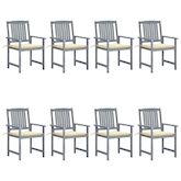 Chaises de jardin et coussins lot de 8 Bois acacia solide Gris