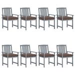 Chaises de jardin et coussins lot de 8 Bois acacia solide Gris