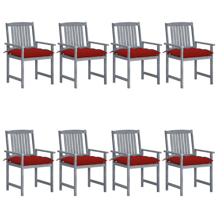 Chaises de jardin et coussins lot de 8 Bois acacia solide Gris