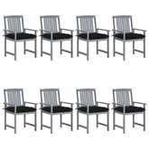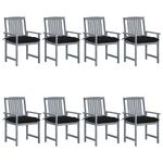 Chaises de jardin et coussins lot de 8 Bois acacia solide Gris