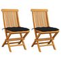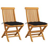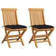 Chaises de jardin et coussins noir lot de 2 Bois de teck massif