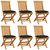 Chaises de jardin et coussins noir lot de 6 Bois de teck massif